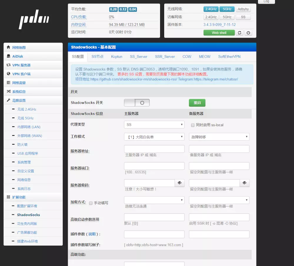 这里选择了潘多拉固件,因为里面集成了OpenVPN的功能,比较容易地部署上去。