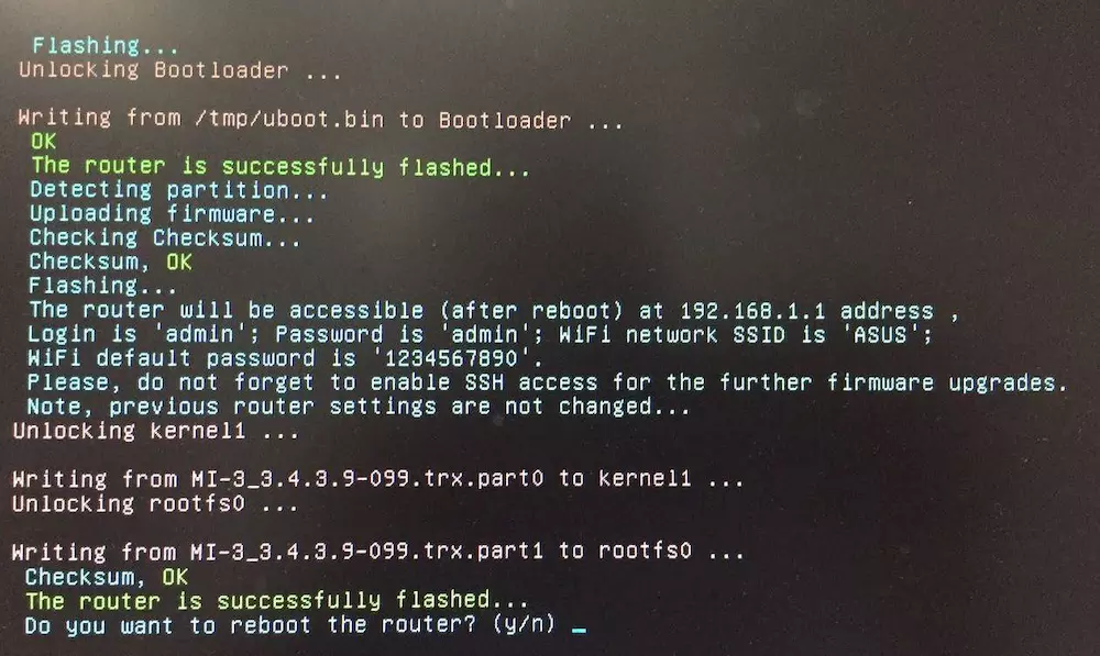 重启后,路由器的AP换成了ASUS,Wifi密码为1234567890。连接路由器成功后,输入路由器地址192.168.1.1,账号和密码皆为admin。